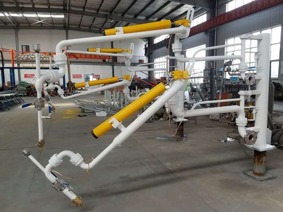 鶴管的安裝方法:發(fā)油臺與鶴管連接處配有相應(yīng)的標(biāo)準(zhǔn)法蘭,并保證基礎(chǔ)法蘭牢固可靠,法蘭盤距地面高度為2.1~2.2米,鶴管倒裝時(shí)法蘭盤距地面高度為2.7~2.8米。安裝過程中,每個(gè)法蘭面必須輕清潔干凈,有密封槽的必須用黃油將O形圈裝好后再連接在每個(gè)銷軸轉(zhuǎn)動部分及彈簧平衡器安裝使用前必須涂潤滑機(jī)油。<了解詳情>